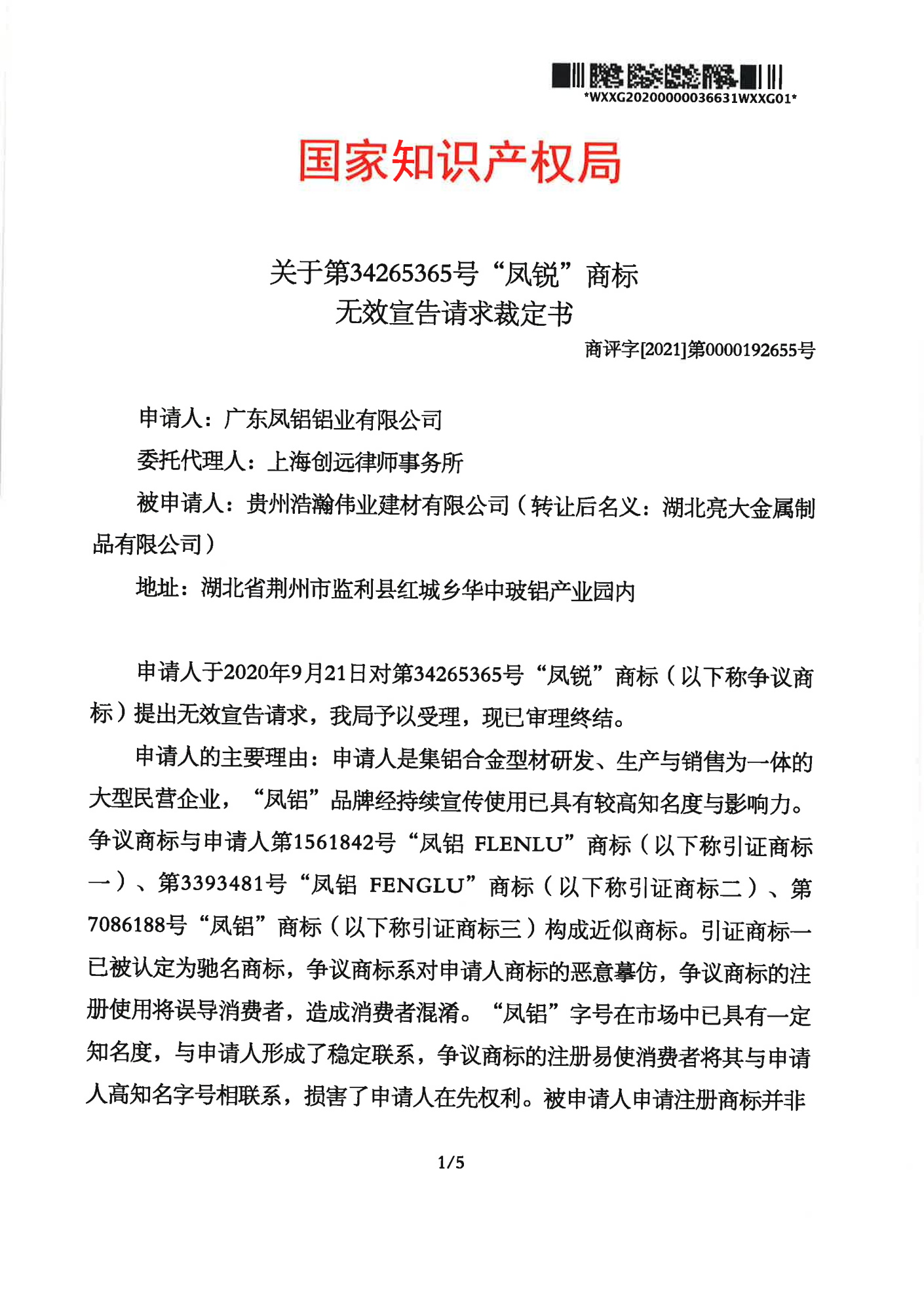 佳木斯辉知队 | 国家知识产权局:“凤锐”商标无效
